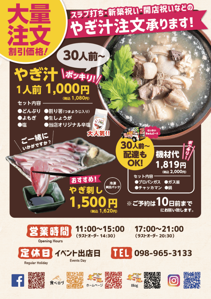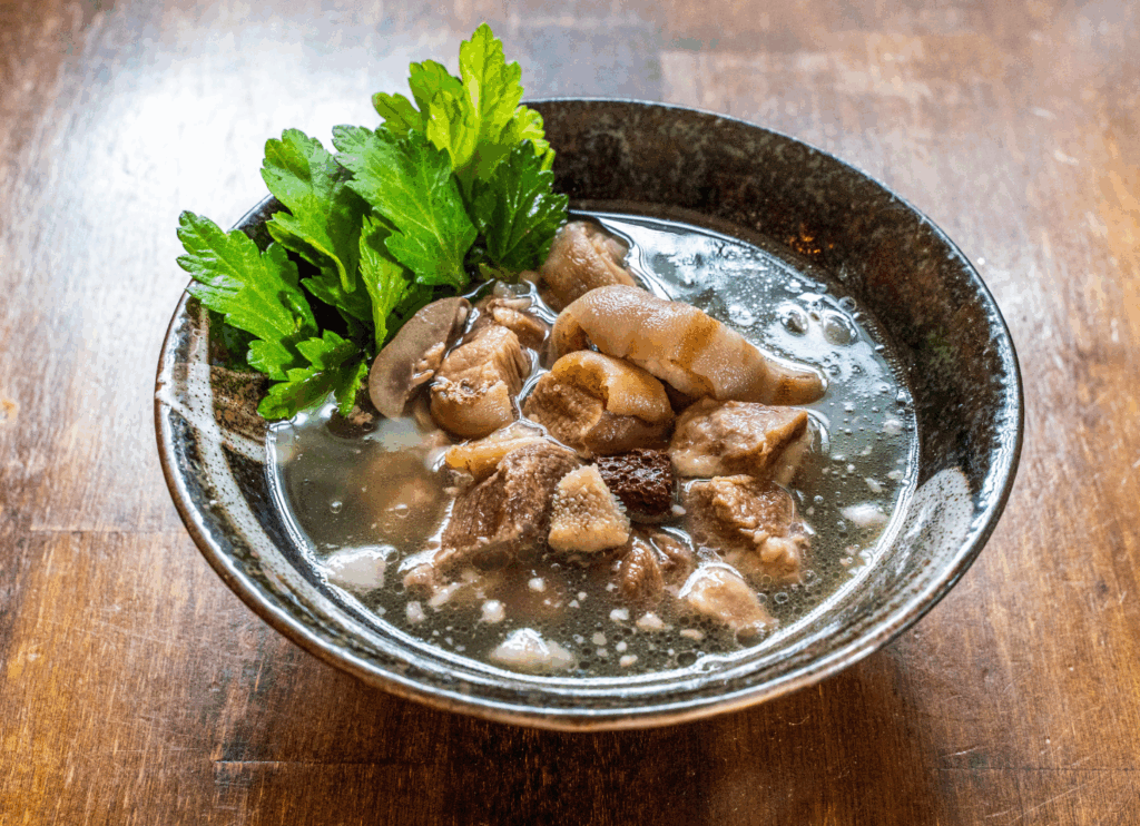 沖縄の伝統的な味わいを堪能できる一品です。じっくりと煮込まれたやぎ肉は、滋味深く、やさしい風味が特長。地元の特産品やこだわりの調味料とともに仕上げたスープは、コクと旨味がたっぷりで、心身を温めてくれるような味わいです。
